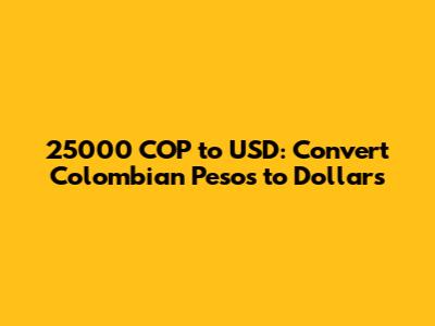 Converting 25000 COP to USD involves understanding the current exchange rate and the factors that influence it. By using reliable currency converters and keeping an eye on economic trends, you can make informed decisions about when to convert your money. While $6.25 USD might not seem like much, it can still buy you basic necessities or a small treat in the United States. Happy converting, folks!