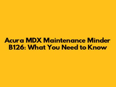 Hey Acura MDX owners! Ever seen the B126 code pop up on your dashboard and wondered what it means? Don't sweat it; we're here to break it down for you in plain English. This article will cover everything you need to know about the Acura MDX Maintenance Minder B126 service, ensuring your ride stays smooth and your wallet doesn't take an unnecessary hit.