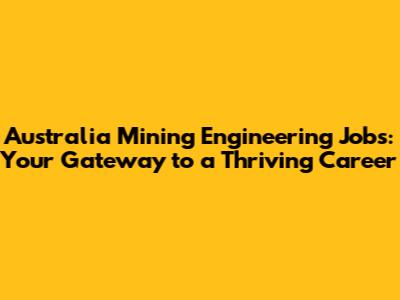 Australia Mining Engineering Jobs: Your Gateway