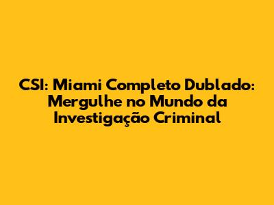CSI: Miami Completo Dublado: Sua Jornada Na Investigação Criminal