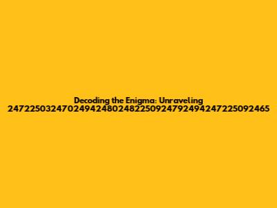 Decoding The Enigma: Unraveling 247225032470249424802482250924792494247225092465
