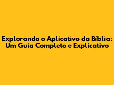 Explorando O Aplicativo Da Bíblia: Um Guia Completo E Explicativo