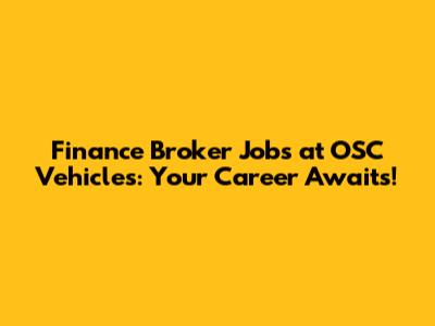 Landing finance broker jobs at OSC Vehicles can be a rewarding career move. With the right qualifications, skills, and preparation, you can secure a position and thrive in this dynamic industry. So, start your job search today and take the first step toward a successful career with OSC Vehicles!