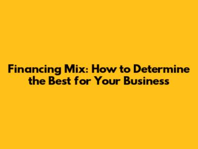 Financing Mix: How To Determine The Best For Your Business
