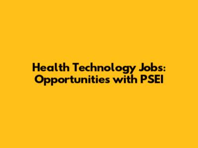 Health Technology Jobs: Opportunities With PSEI