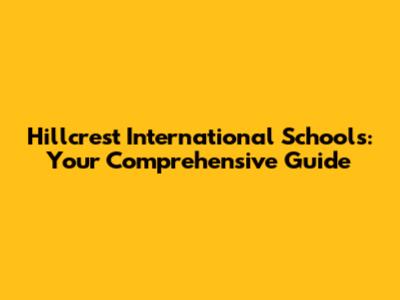 Hillcrest International Schools: A Comprehensive Guide