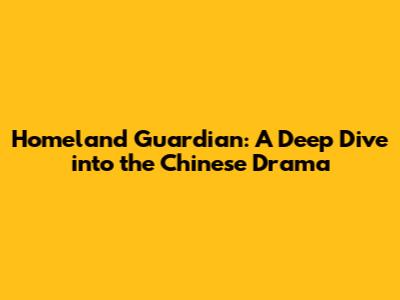Homeland Guardian: A Deep Dive Into The Chinese Drama