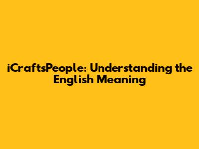 ICraftsPeople: Unveiling The English Meaning