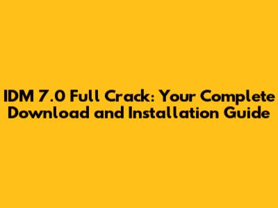 IDM 7.0 Full Crack: Download & Installation Guide