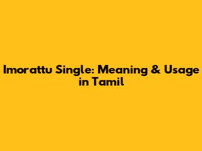 Imorattu Single: Meaning & Usage In Tamil