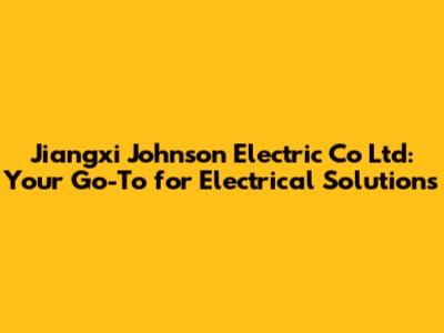 Jiangxi Johnson Electric: Your Go-To For Electrical Solutions
