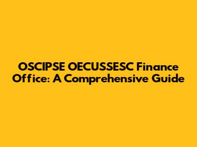 OSCIPSE OECUSSESC Finance Office: What You Need To Know