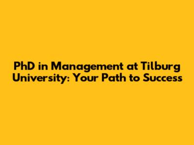 PhD In Management At Tilburg University: Your Path To Success