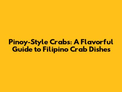 Pinoy-Style Crabs: The Ultimate Guide