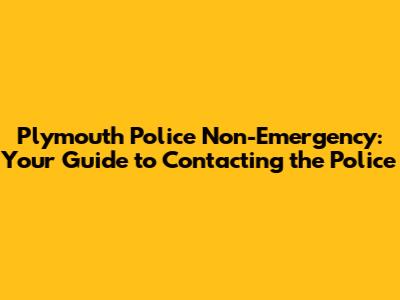 Plymouth Police Non-Emergency: How To Contact For Help