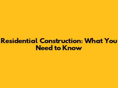 Residential Construction: What You Need To Know