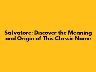 Salvatore: Discover The Meaning And Origin Of This Classic Name