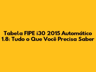 Tabela FIPE i30 2015 automático 1.8: Se você está pensando em comprar ou vender um Hyundai i30 2015 com câmbio automático e motor 1.8, provavelmente já se deparou com a necessidade de consultar a Tabela FIPE. Mas, afinal, o que é essa tabela e como ela pode te ajudar? Neste guia completo, vamos desvendar todos os mistérios da Tabela FIPE i30 2015 automático 1.8, desde o que ela representa até como você pode utilizá-la para tomar decisões inteligentes no mercado automotivo. Bora lá?