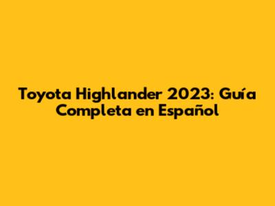 Toyota Highlander 2023: Guía Completa En Español