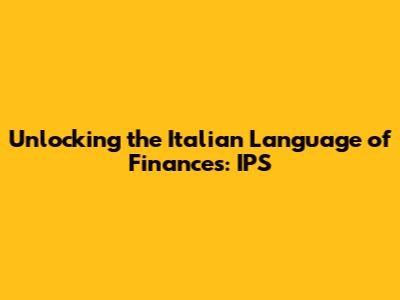 Demystifying "IPS": Your Gateway to Italian Finances